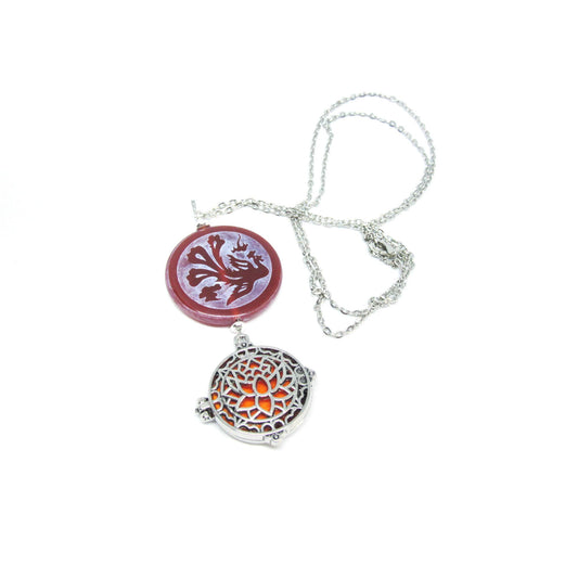 Dragon & Peacock Etched Carnelian Aromatherapy Jewelry Gifts - Essential Oil Diffuser Necklace